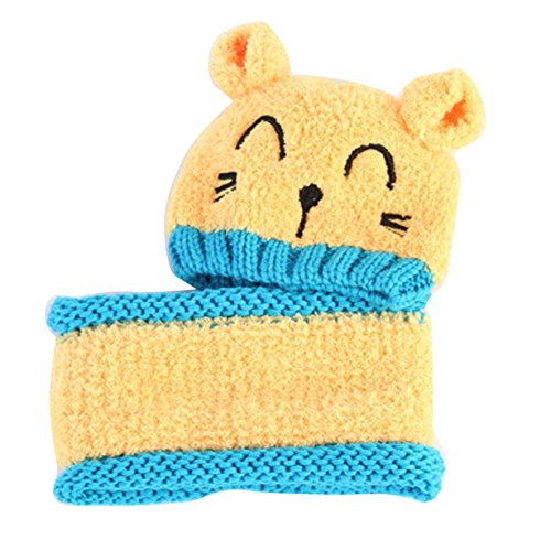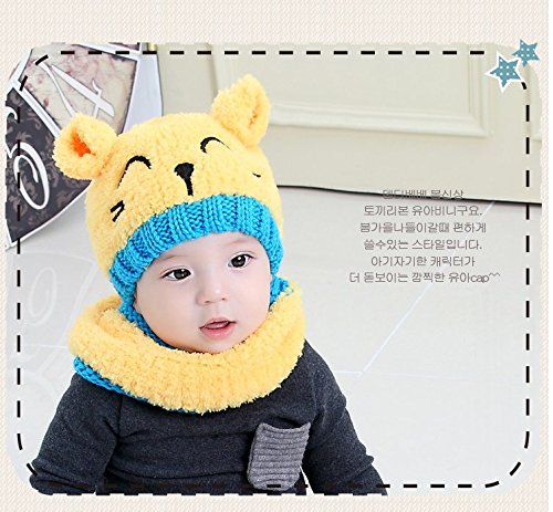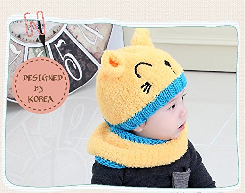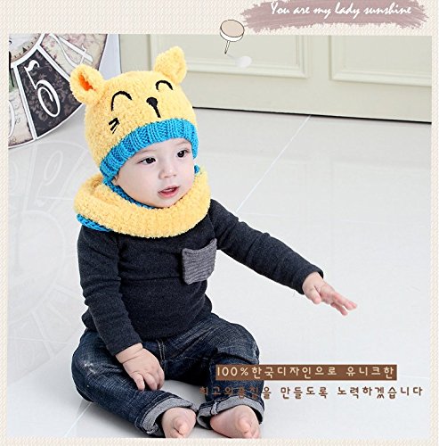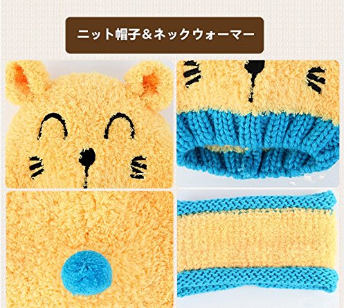 ニット帽子 ベビー帽子 ネックウォーマー セット 子供 子ども用 マフラー かわいい 防寒 お得なニット帽子とマフラーセット 出産祝い (イエロー)
