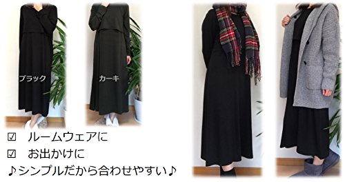 (エールドアンジュ) ailes de l'ange eheu マタニティ 授乳口付き マキシ丈 ワンピース 長袖 (Lカーキ)