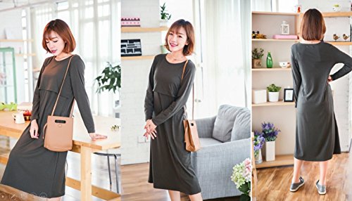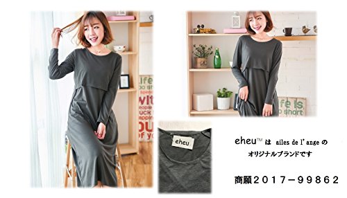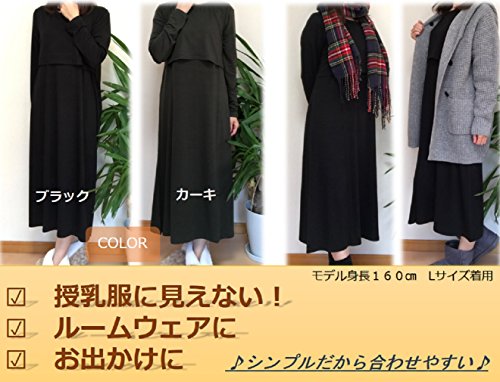 (エールドアンジュ) ailes de l'ange eheu マタニティ 授乳服 マキシ丈 ワンピース 授乳口付き 長袖 (M, カーキ)