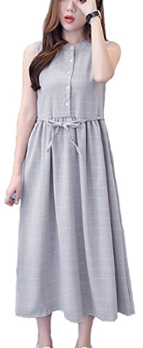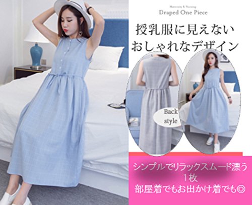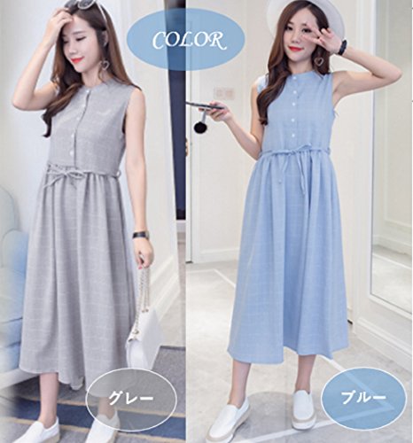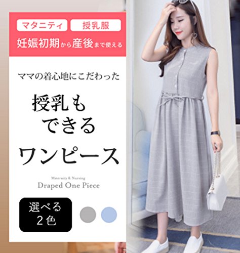 [エヘウ] マタニティ マキシ丈 ワンピース 授乳服 レディース ノースリーブ (グレー, L)