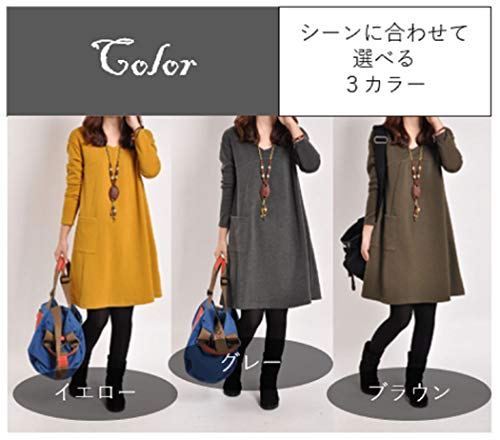 [エヘウ] マタニティ チュニック 長袖 (ブラウン, XL)