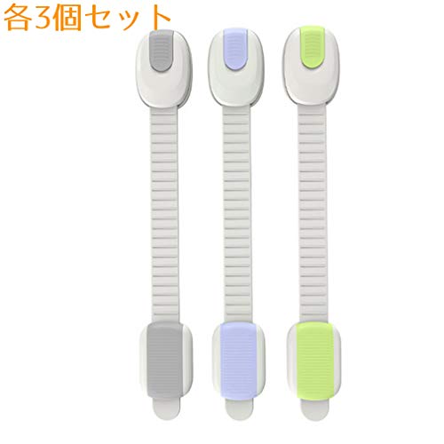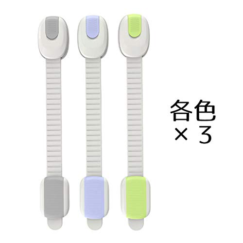 ajaflowers チャイルドロック ベビーガード 地震対策 長さ調整可 引き出しロック 扉 キャビネット 戸棚 開閉禁止 ドアロック 赤ちゃん いたずら防止 冷蔵庫ロック パステルカラー ストッパー 3色9個セット/aja-266