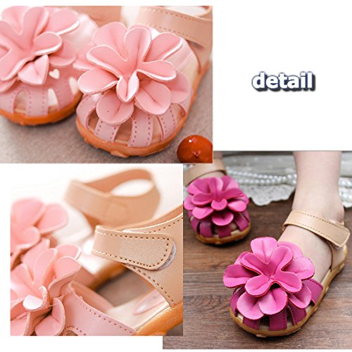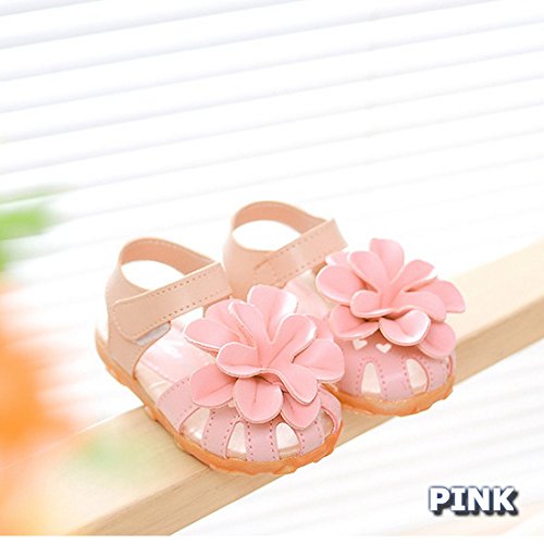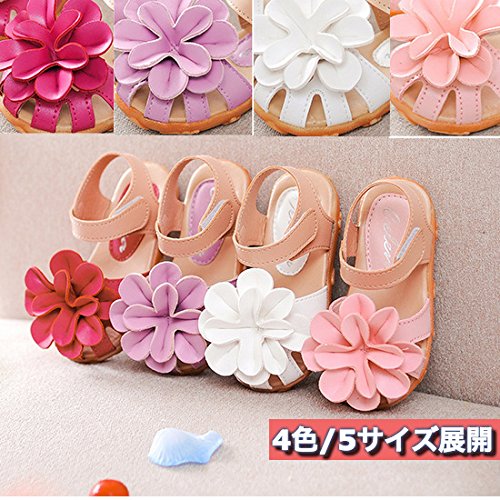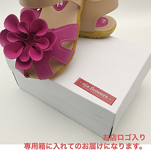 ベビー おしゃれ 靴 【 フラワー モチーフ サンダル 】赤ちゃん キッズ 履き心地 柔らか マジックテープ ストラップ 靴裏まで 可愛い 花 模様 滑り止め 付き 女の子 シューズ 4色5サイズ(13.5-15.5cm)/aja flowers (22(14cm), ピンク)