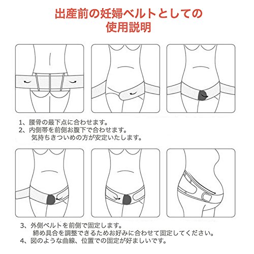 - 2段ベルトで簡単装着、妊娠中のお腹も腰も柔らか素材で圧迫せず、しっかり、優しくサポートします。