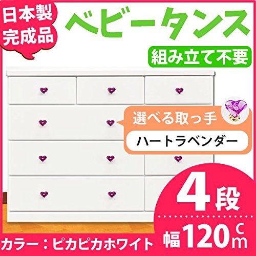 取っ手が選べるローチェスト/タンス 120cm幅 4段(本体:ピカピカホワイト 取っ手:ハートラベンダー×全12個) 【日本製】【完成品】【代引不可】 生活用品 インテリア 雑貨 インテリア 家具 収納家具 子供用家具 ベビー、キッズチェスト top1-ds-1412507-ak [簡易パッケージ品]