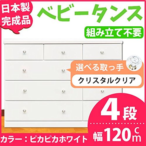 取っ手が選べるローチェスト/タンス 120cm幅 4段(本体:ピカピカホワイト 取っ手:クリスタルクリア×全12個) 【日本製】【完成品】【代引不可】 生活用品 インテリア 雑貨 インテリア 家具 収納家具 子供用家具 ベビー、キッズチェスト top1-ds-1412503-ak [簡易パッケージ品]