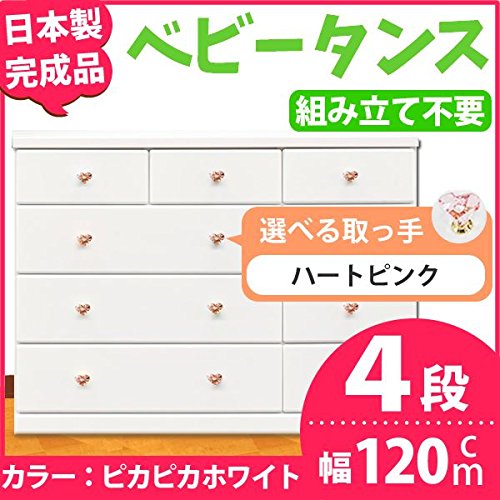 取っ手が選べるローチェスト/タンス 120cm幅 4段(本体:ピカピカホワイト 取っ手:ハートピンク×全12個) 【日本製】【完成品】【代引不可】 生活用品 インテリア 雑貨 インテリア 家具 収納家具 子供用家具 ベビー、キッズチェスト top1-ds-1412505-ak [簡易パッケージ品]