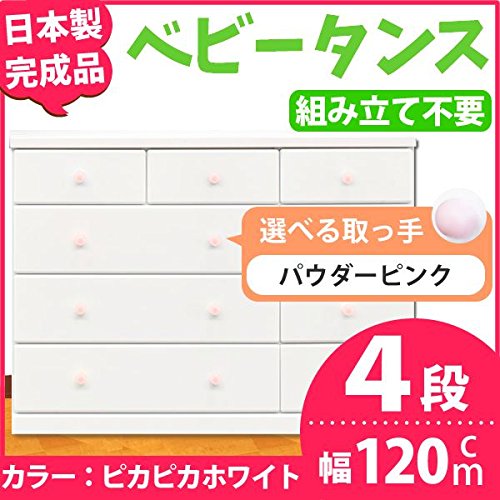 取っ手が選べるローチェスト/タンス 120cm幅 4段(本体:ピカピカホワイト 取っ手:パウダーピンク×全12個) 【日本製】【完成品】【代引不可】 生活用品 インテリア 雑貨 インテリア 家具 収納家具 子供用家具 ベビー、キッズチェスト top1-ds-1412487-ak [簡易パッケージ品]