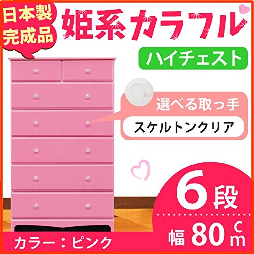 姫系カラフルハイチェスト/収納タンス 【6段 ピンク×取っ手:スケルトンクリア×全12個】 幅80cm 日本製 【完成品】 生活用品 インテリア 雑貨 インテリア 家具 収納家具 子供用家具 ベビー、キッズチェスト top1-ds-1611583-ak [簡易パッケージ品]