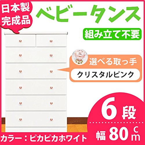 取っ手が選べるハイチェスト 【6段 ホワイト×取っ手:クリスタルピンク/全12個】 幅80cm 日本製 【完成品】【代引不可】 生活用品 インテリア 雑貨 インテリア 家具 収納家具 子供用家具 ベビー、キッズチェスト top1-ds-1412617-ak [簡易パッケージ品]
