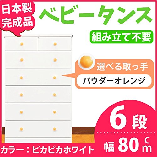 取っ手が選べるハイチェスト 【6段 ホワイト×取っ手:パウダーオレンジ/全12個】 幅80cm 日本製 【完成品】【代引不可】 生活用品 インテリア 雑貨 インテリア 家具 収納家具 子供用家具 ベビー、キッズチェスト top1-ds-1412605-ak [簡易パッケージ品]