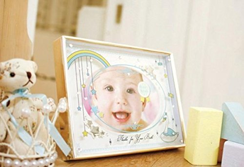 輝く3つ星とレースプリントがポイントの台紙と、甘いお菓子を散りばめたようなキュートなプリントのガラスが2層に重なり、中の写真を上品に彩ります。