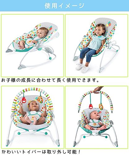 小さいうちはロッキングチェアとして、大きくなったらイスとしても使えます!赤ちゃんに心地よいバイブレーションと2段階リクライニング機能付き♪ 製造国:中国 素材・材質:ABS樹脂、TPR、PP、鋼、ポリエステル、PE、EVA、POM、合成ゴム 商品サイズ:約60.5×51.8×60.5cm 重量:3900g 仕様:組み立て式対象年齢:0ヵ月~耐荷重:18kg使用電池:単2×1(別売り)安全基準:CE、食品衛生法、ASTMF963、ASTMF21672段階リクライニング機能付き 付属品:取扱説明書