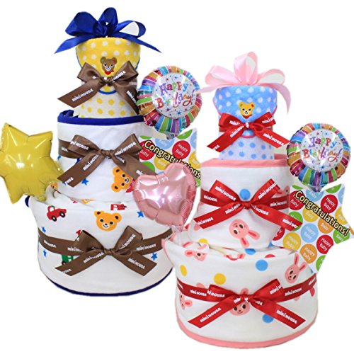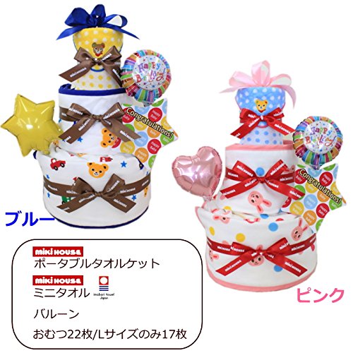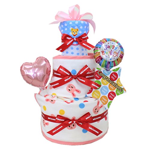 ミキハウス タオルケット&バルーンの3段おむつケーキ (パンパースM, ピンク)