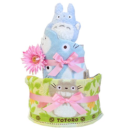 となりのトトロ(スタジオジブリ)のぬいぐるみ、タオルなどで出来たオムツケーキです。