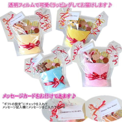 - メッセージご希望のお客様は、【ギフトの設定】にチェックしてメッセージカード欄にご記入ください。「Happy New Baby」「○○ちゃん ご出産おめでとう」など50文字まで。ラッピングのリボン部分にお付けします。
