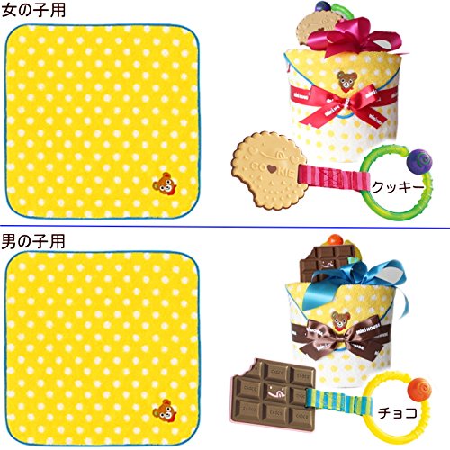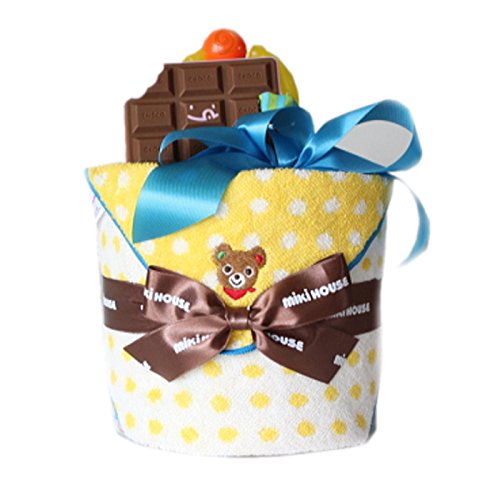 ミキハウス1段おむつケーキ 黄色ドットミニタオル (パンパースM, 男の子用)