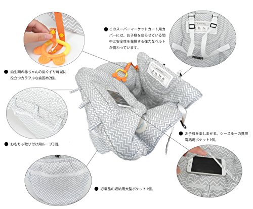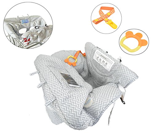 ツーインワン ショッピングカート カバー 多機能 ハイチェア カバー 赤ちゃん 幼児用 歯固め おもちゃ 付き (グレー)
