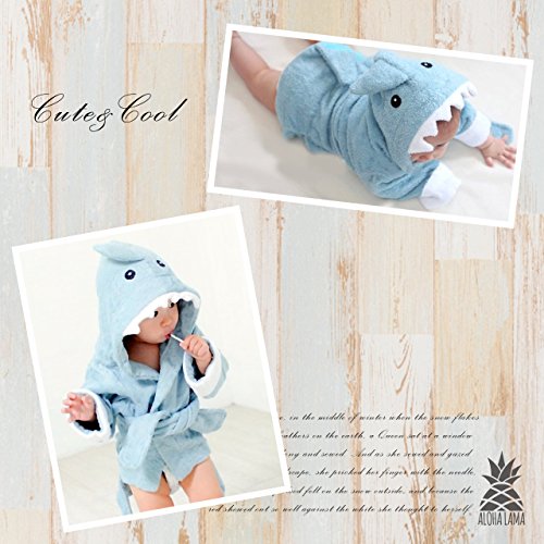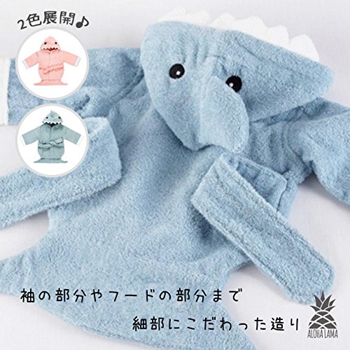 aloha lama(アロハラマ)キッズ & ベビー 赤ちゃん 日除け 対策 バスローブ タオル プール スイミング ビーチ サメ バスタオル 出産祝い プレゼント 男の子 女の子 0歳 - 3歳 m004 (青)