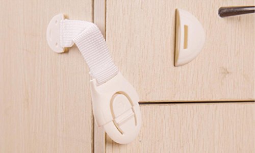 - 柔らかい化学繊維製の安全ストラップは、食器棚、ドア、トイレ、引き出しなど、またはコーナーの周りでもロックできます。