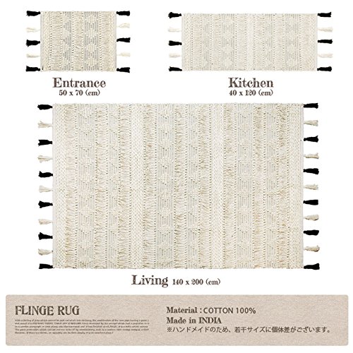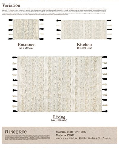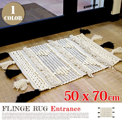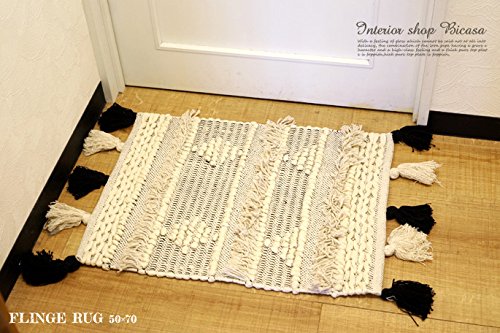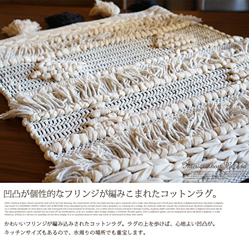 かわいいフリンジが編み込みされたコットンラグ。ラグの上を歩けば、心地よい凸凹が。キッチンサイズもあるので、水周りでも重宝します。サイズは500mm×700mmで、キッチンサイズ、リビングサイズもございます。コットンなので洗いをかけた後の質感も楽しめます。ブラック&ホワイトの1カラーでフェミニン過ぎない清潔感。