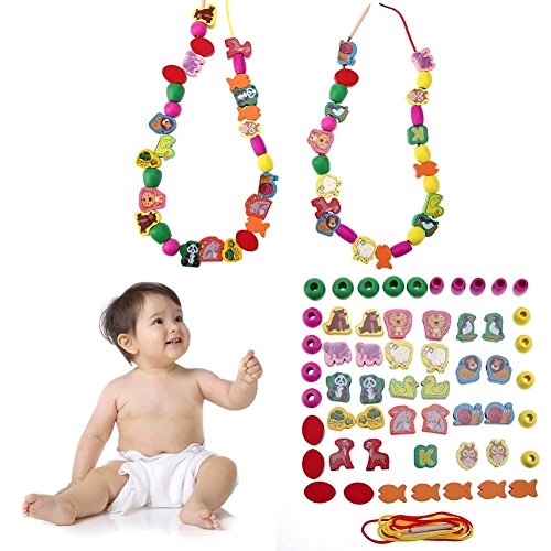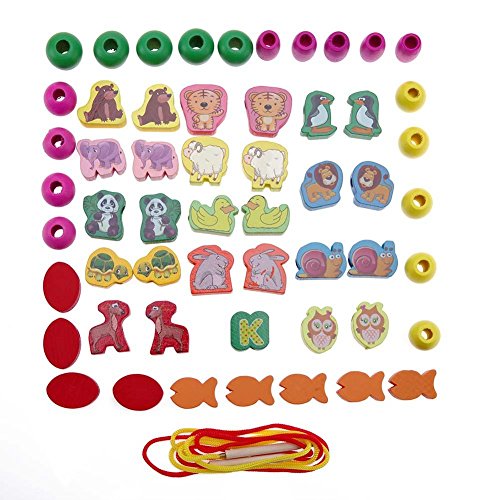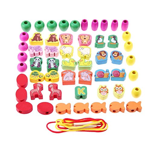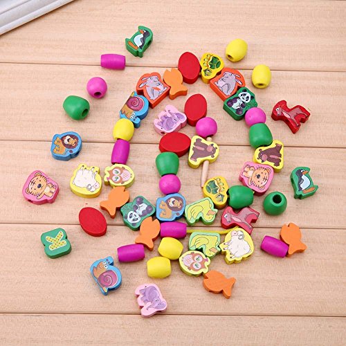 Kids Stringing Threadingビーズおもちゃ、amazingdeal Children Cartoon動物木製おもちゃ60pcs /ロット