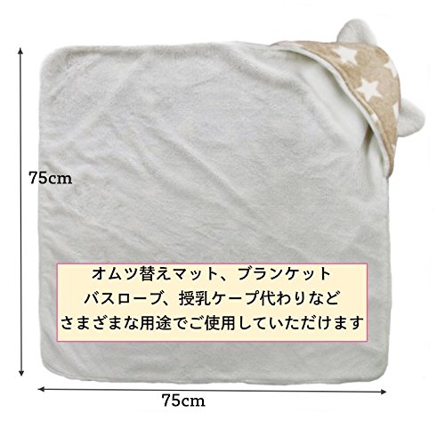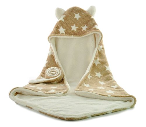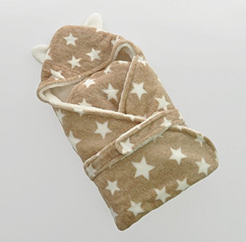 Rajjo ベビー 赤ちゃん おくるみ ふわふわ 新生児 フリース 防寒 星 柄 耳付き フード 防寒 秋冬 (ブラウンA)