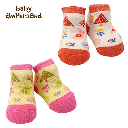 (アンパサンド)AMPERSAND うさぎと花柄1Pソックス出産祝い/ベビー/女の子 7-9 クリーム