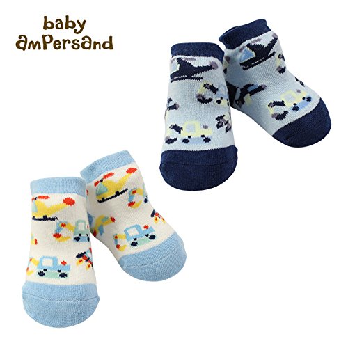 (アンパサンド)AMPERSAND 乗り物柄1Pソックス出産祝い/ベビー/男の子 10-12 ブルー