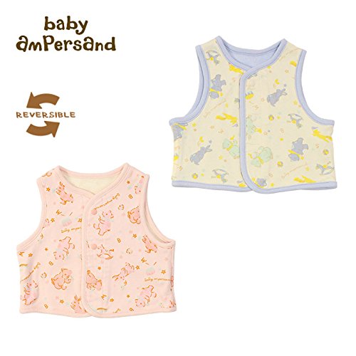 (アンパサンド)AMPERSAND くまとうさぎ柄リバーシブルベストはおりもの 70 サーモンピンク