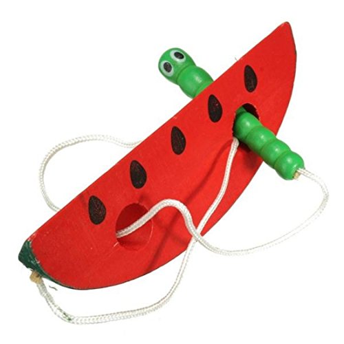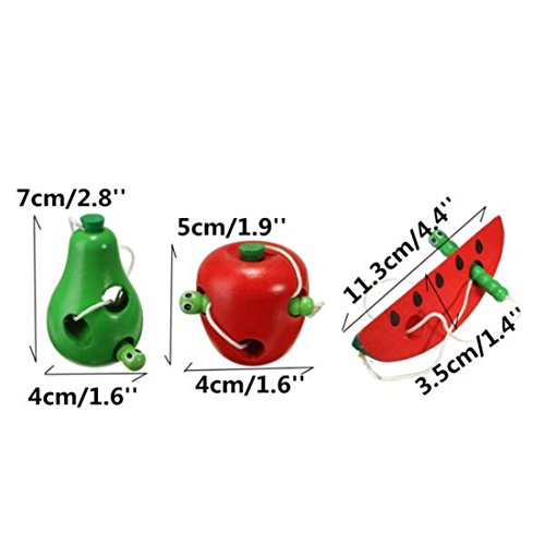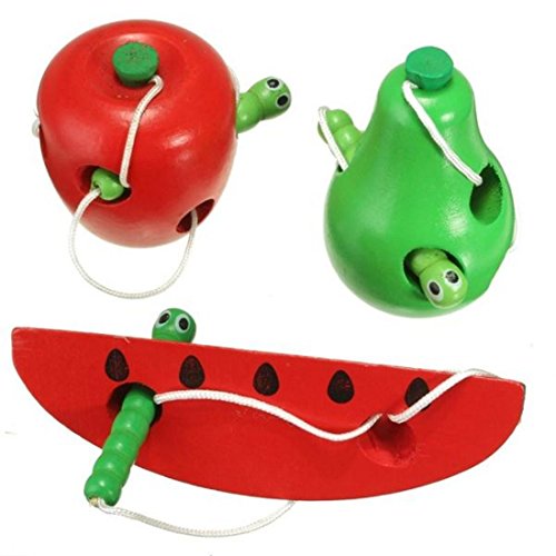 amzmonnsuta かわいい木製のみみず・果物 ベビー キッズ発育のおもちゃ アップル・梨・ビーズ・昆虫ロープストリンギング スイカを食べる