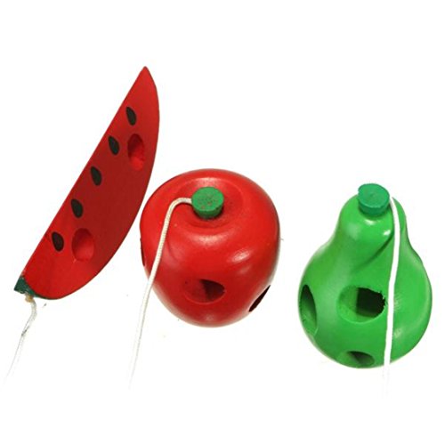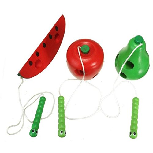 かわいい木製のみみず・果物 ベビー キッズ発育のおもちゃ アップル・梨・ビーズ・昆虫ロープストリンギング スイカを食べる