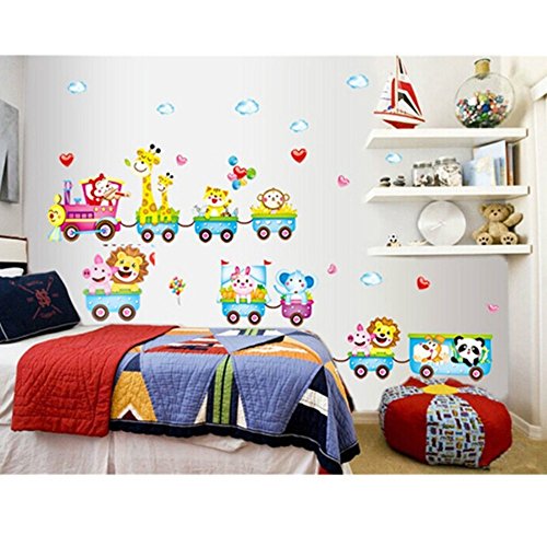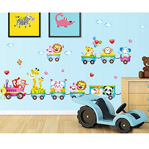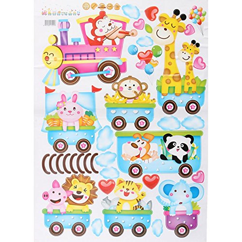 amzmonnsuta 子供のベッドルームのために素敵な漫画列車の動物の取り外し可能な壁のステッカー