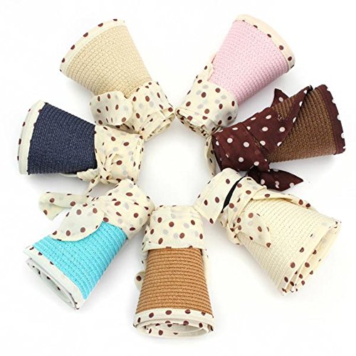 6色の少女夏のカジュアルな水玉ボウノットビーチサンハット麦わら帽
