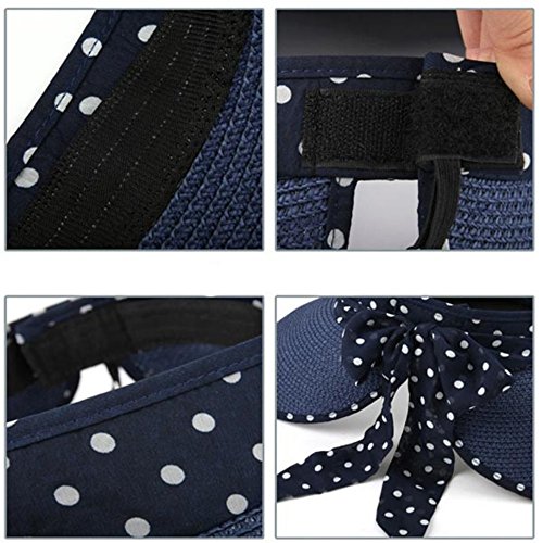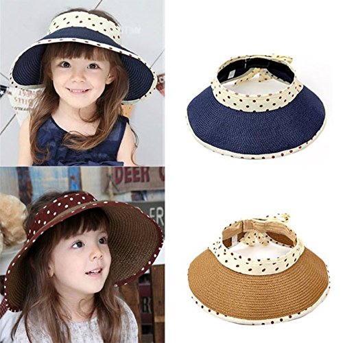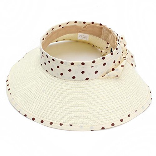 amzmonnsuta ビーチ 少女夏のカジュアルな水玉模様おじぎ付けサンハット 麦わら帽
