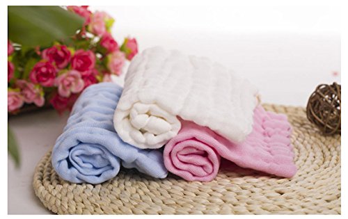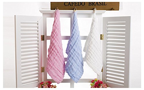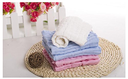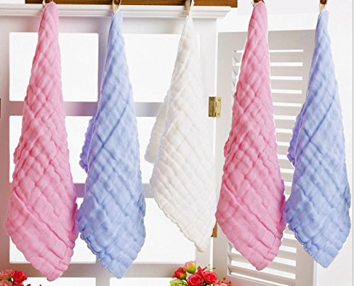 ange select ベビー タオル 柔らかい 6重 ガーゼケット 5枚 セット 30×30cm ふわふわ 綿 100% (ホワイト1・ピンク2・ブルー2)