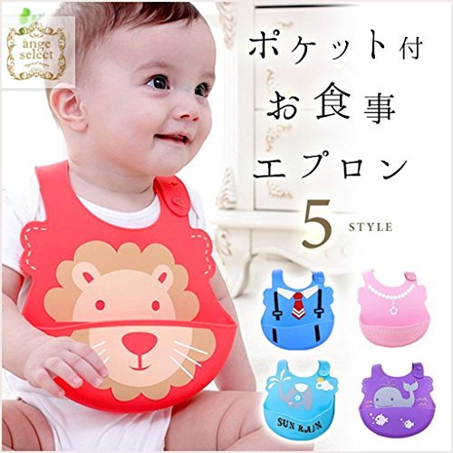 ange select ベビー スタイ 赤ちゃん 食事 シリコン エプロン 幼児 ポケット付き ビブ (ネックレス)