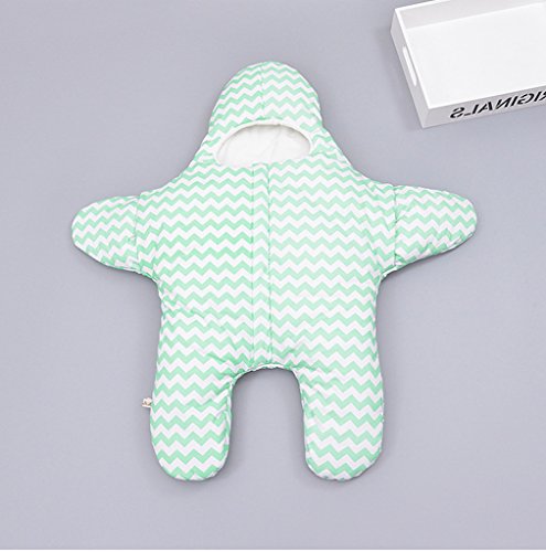 ange select 新生児 0~6ヶ月 ベビー おくるみ 星 シュラフ 男の子 女の子 コットン スリーパー (グリーン)
