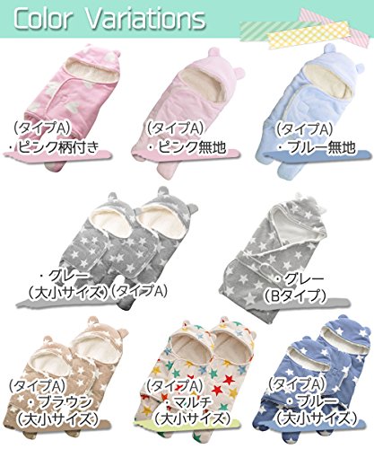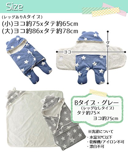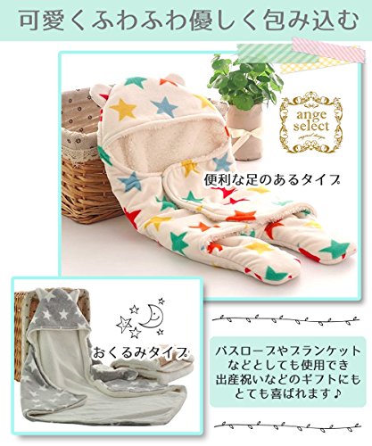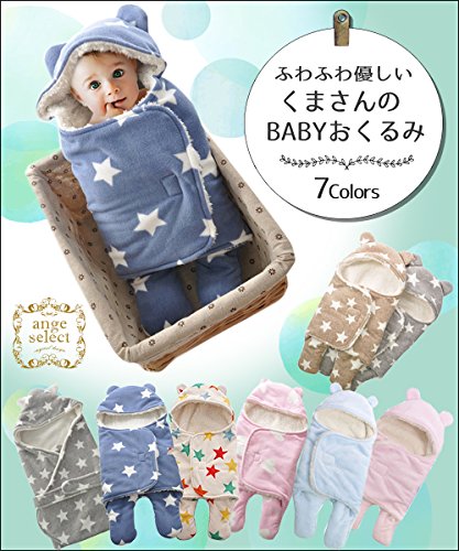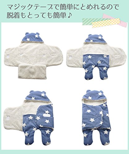 ange select ベビー おくるみ 星 柄 ふわふわ クマさん 新生児 出産祝 スリーパー (ブルー無地(小))