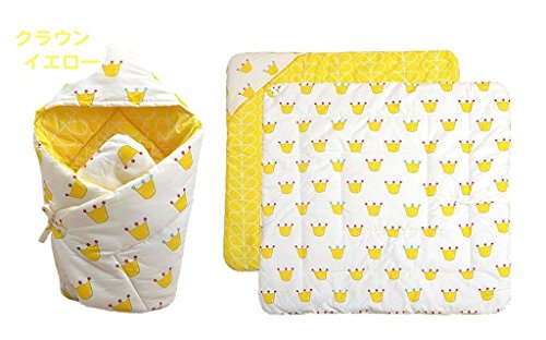 ange select ベビー おくるみ 天然 コットン スリーパー 布団 90×90 新生児 キッズ ブランケット (クラウン(イエロー))