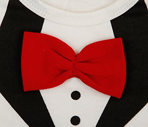 - おしゃれなタキシードプリントが可愛いベビー用ロンパースです。