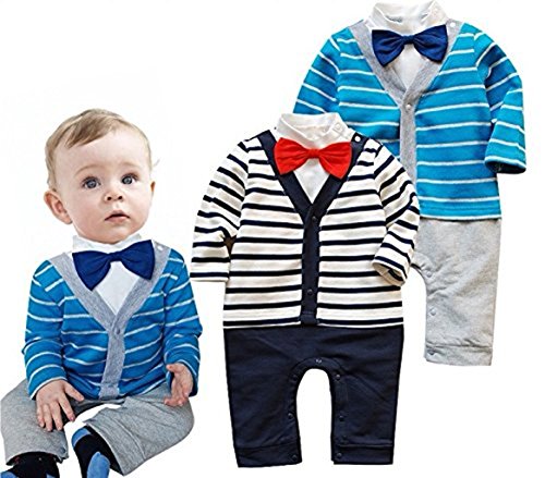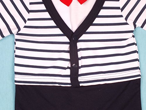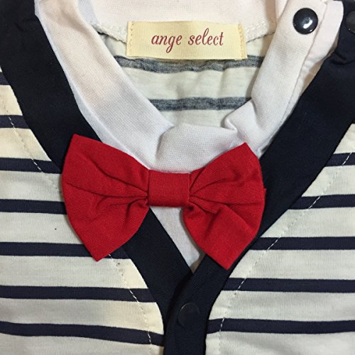 ange select ボーダー ベビー ロンパース 男の子 赤ちゃん 蝶ネクタイ カバーオール 結婚式 記念撮影 出産祝い プレゼント (ネイビー90cm)