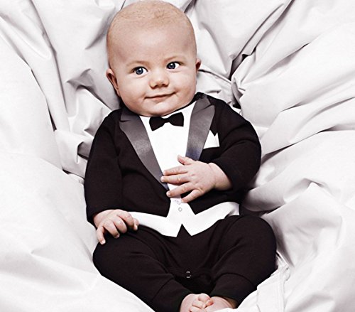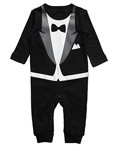 - おしゃれなタキシードプリントが可愛いベビー用ロンパースです。