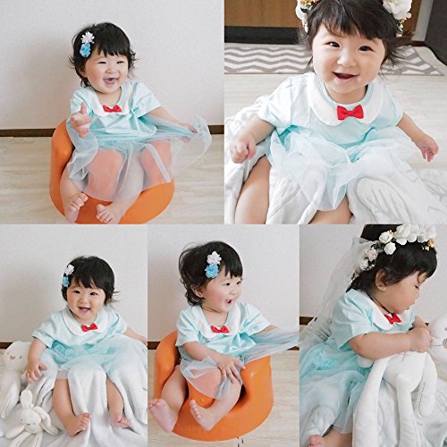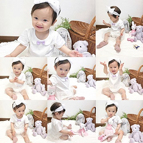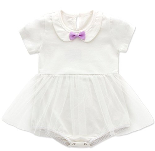ange select ベビー ロンパース 女の子 チュール ワンピース風 カバーオール 半袖 リボン 新生児 (ホワイト73cm)