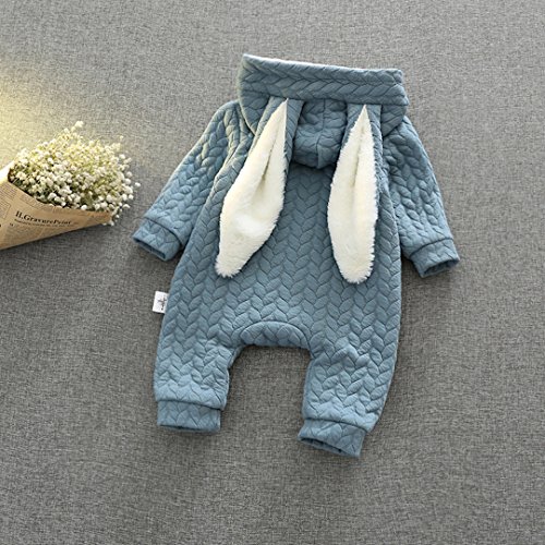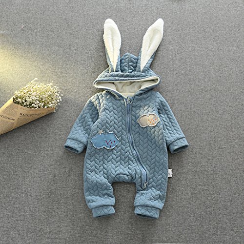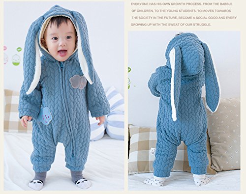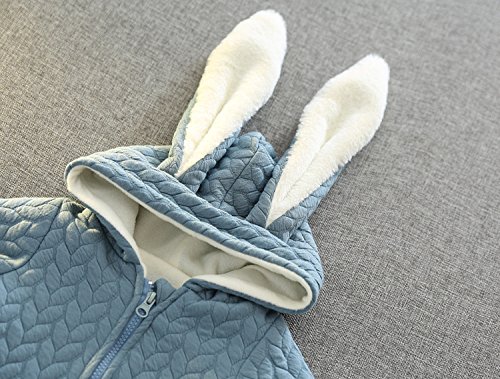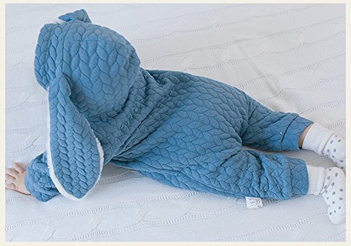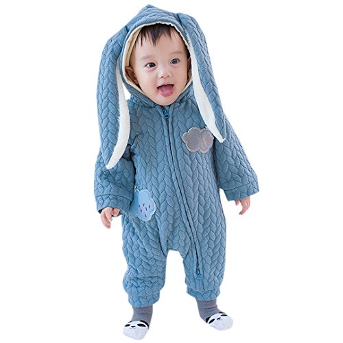 ange select うさぎ フード 耳付き ベビー キッズ あったか 長袖 ロンパース きぐるみ (ブルー80)