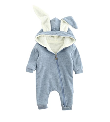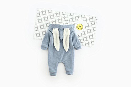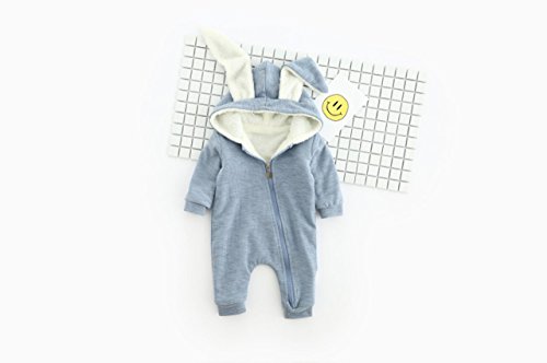 ange select 耳付き ロンパース うさぎ ベビー キッズ 長袖 前開き カバーオール (ブルー73)