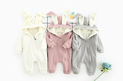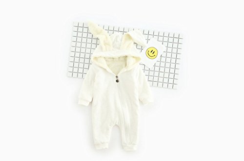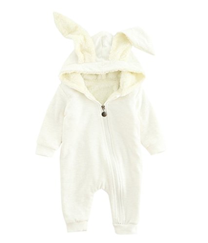ange select 耳付き ロンパース うさぎ ベビー キッズ 長袖 前開き カバーオール (ホワイト66)