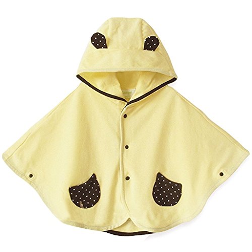 ange select キッズ ベビー ポンチョ 男女 兼用 タオル カーディガン 紫外線 空調 防寒 対策 プール 海 出産祝い (イエロー・くま)