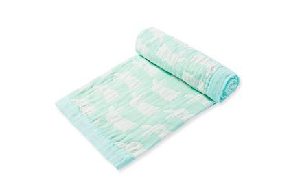 アメリカでセレブも愛用するママに人気のブランド エンジェルディアのものです。 100%コットンモスリン素材で2重になっているジャガードブランケットです。 肌触りがとてもよくまた、春から秋にかけて暖かい季節の赤ちゃんのブランケットには最適です。