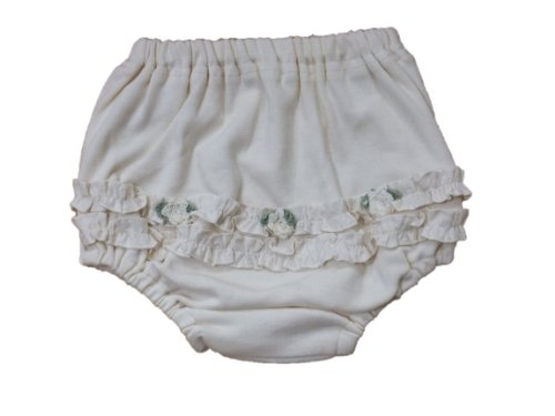 編み花をちりばめ、よこに折りの模様がかわいらしいブルマ。
